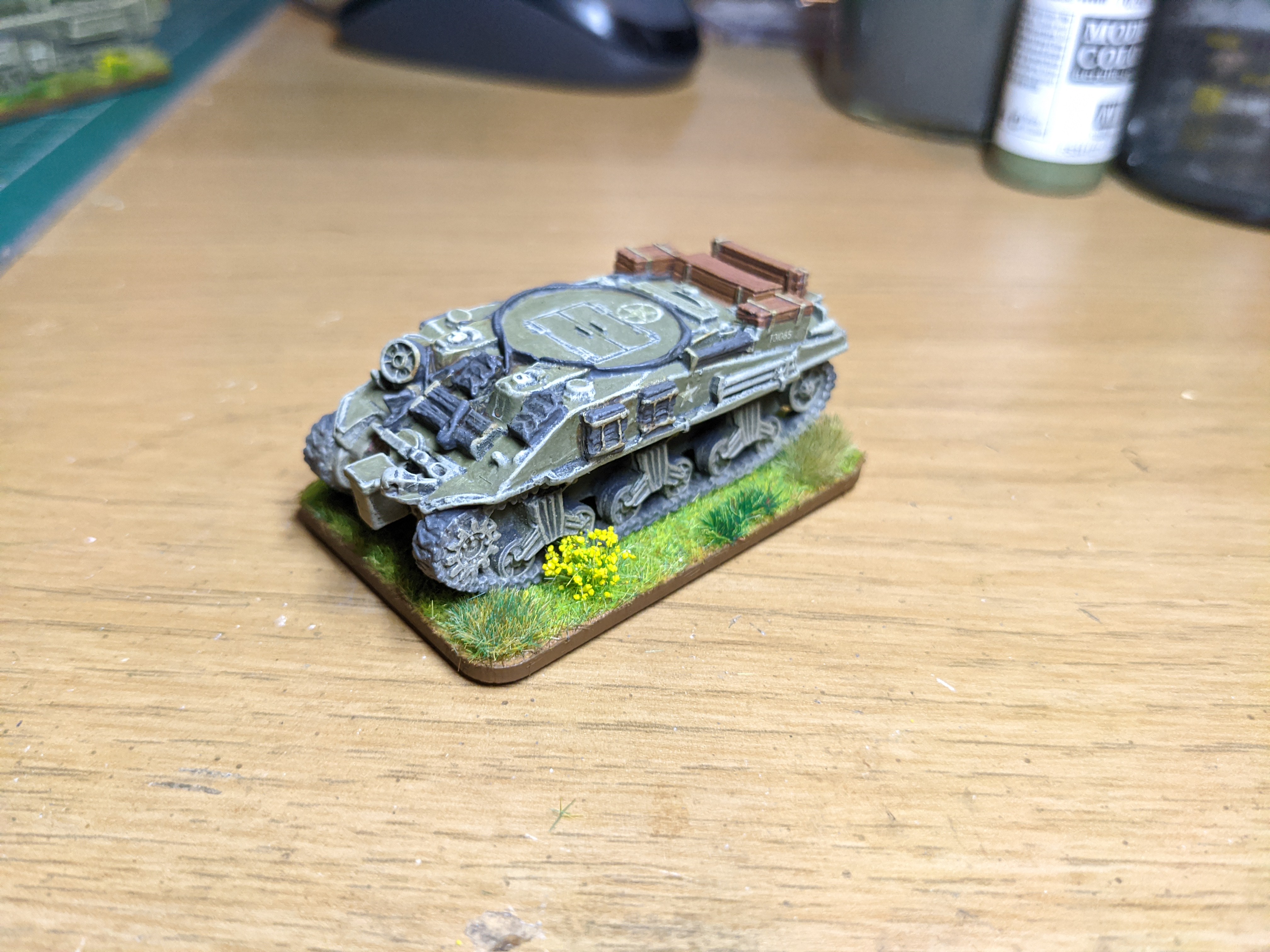 The minefield is well and truly breached, as Sherman Crabs make repeated runs to widen the gaps. Two Crabs are lost during the game, one clearing mines and one to A/T fire.